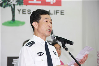 无毒家庭代表在启动仪式上发出了“珍爱生命,远离毒品”的倡议。