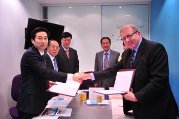 孟兆怀与Dr Doug Hinchliffe 先生分别代表学校签订校际合作协议。