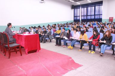 宣讲团成员、成都理工大学龚世达教授作了题为《学习十八大精神,坚定中国特色社会主义信念》的报告。他详细解读了中国特色社会主义道路、中国特色社会主义理论体系、中国特色社会主义制度的内涵及相互关系,阐述了中国道路的必然性,中国道路的基本原则及实现的最终目的和实现这条道路的理想信念支撑。他殷切希望当代大学生一定要坚定道路自信、理论自信和制度自信。
