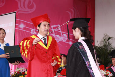 孟兆怀教授为毕业生代表授位并颁发学位证书。他说,学院今年总共有2808名2012届毕业生,你们表现出了优良的学习品质和积极向上的精神风貌。有975名学生光荣加入中国共产党,28人被评为省级优秀大学毕业生,24名同学获得国家奖学金,394名同学获得国家励志奖学金,68名同学考上硕士研究生。学院正值不断推进教育教学改革,实现稳步发展、特色发展的重要时期,同学们不仅是母校改革发展的见证者,也是母校建设发展的参与者。