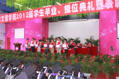 李万斌教授宣读获得2012届省级优秀大学毕业生、校级优秀大学毕业生及国家奖学金毕业生获奖者名单。王洪辉教授宣读获得学位证书、毕业证书、教师资格证书的学生名单,并为获奖同学颁发荣誉证书。