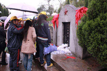 在陵园管理工作者的支持下,扫墓师生在革命英雄纪念碑前奏唱了《国际歌》,向革命先烈敬献花圈和小百花并进行了集体默哀。宣传部姜仕华老师向全体同学强调了祭扫革命烈士陵园的意义,并希望大家弘扬革命精神,秉承先烈遗志,刻苦学习,报效祖国。最后,全体师生面对革命英雄纪念碑,庄严肃立,集体宣誓“秉承博文大理,厚德笃行的校训,继承革命优良传统,争做社会主义事业的接班人”。仪式结束后,师生们在陵园瞻仰了革命先烈,参观了陵园陈列馆并对园区进行了清扫。