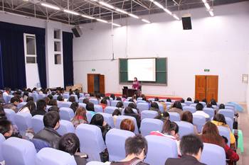 3月7日晚,由中文系工会小组牵头,邀请四川省中国当代文学研究会副会长、四川师范大学文学院硕士生导师周芳芸教授作题为“自立智慧美丽,情亲友情爱情”的学术讲座,周教授简介了林徽因的生平、杰出贡献及甜美的爱情故事和辉煌的人生,并运用优美的诗文及浪漫的爱情故事,向大家诠释了爱情的真谛、甜美和美妙神奇。讲座吸引了众多女学生前往聆听,现场座无虚席,气氛热烈,不时爆发出阵阵欢笑声和掌声。