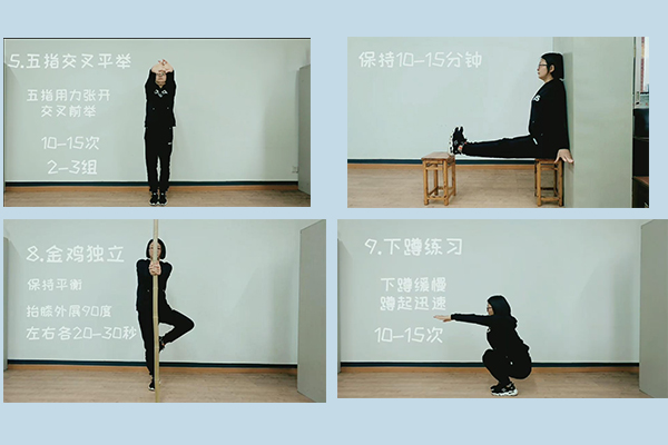 据覃雪芹老师介绍,本来一开始内容很多,她担心太杂,就精简为9个动作,后期宋京林老师还制作了动作详解的视频,也会通过体育学院微信公众号分享出来。