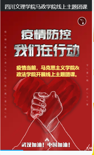 为充分利用“疫情”教材做好青年大学生思想政治工作,马克思主义学院/政法学院自2月15日以来,以微信群和qq群为载体,组织团员青年开展“你我共同战疫、凝聚青春力量 ”线上主题团课,引领青年学生成长成才。