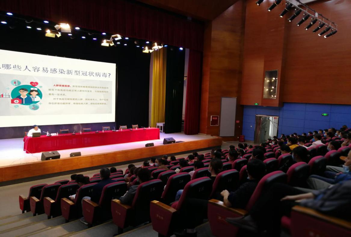 5月15日上午,后勤服务处校医院对返校后的餐饮人员及超市服务人员、蔬菜配送供货商等130余人进行了疫情防控专题培训会。培训会上全面讲解了教职员工在学校疫情防控期间开学前、开学后的各项工作注意事项。