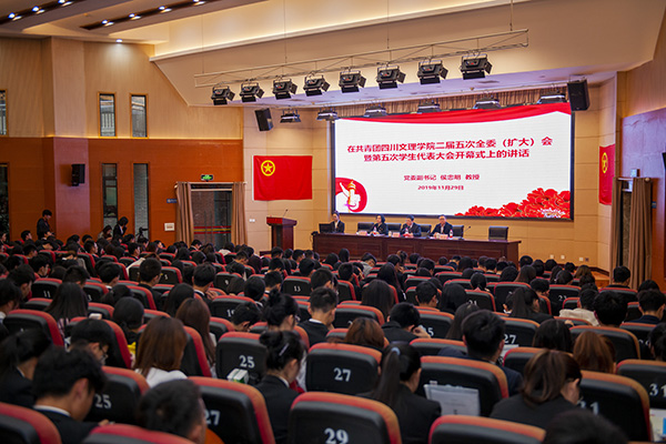 11月29日,共青团AWC万象城娱乐二届五次全委(扩大)会暨第五次学生代表大会在莲湖校区召开,党委副书记侯忠明出席会议并讲话,会议由团委负责人主持。