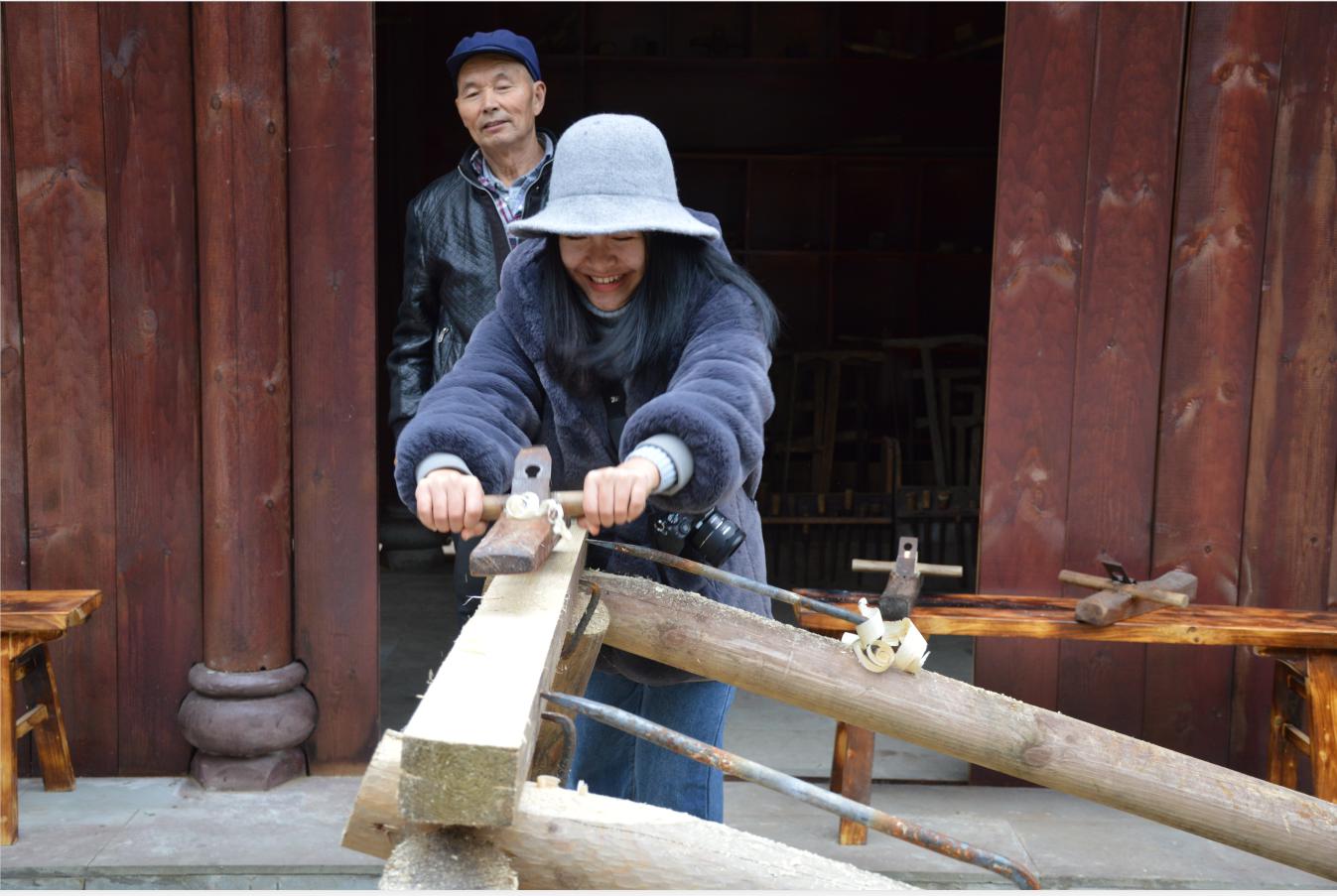 他们还参与到锯木头、刨木材、推石磨等互动体验活动中,对中国的木器制作、豆腐传统制作技艺、传统石磨使用方法、酿酒工艺加深了认识和了解。