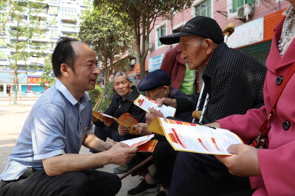 党员同志和志愿者们向社区居民分发党史宣传册,并与社区群众共同回顾中国共产党的百年光辉历史。