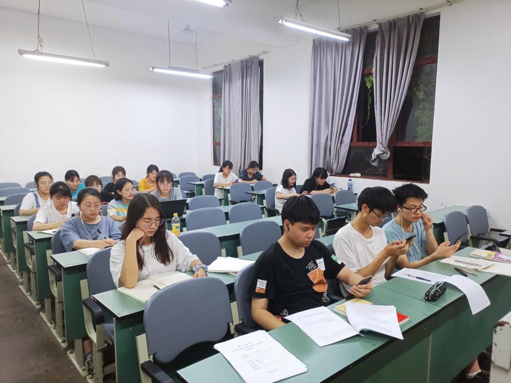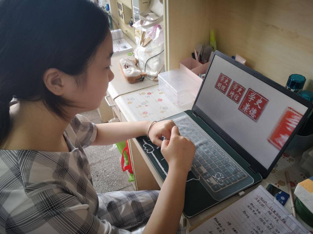 学生们通过手机观看《全国大学生党史知识竞答大会》