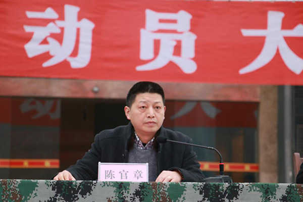 学生工作部部长陈官章宣读2018级学生军训团任职命令