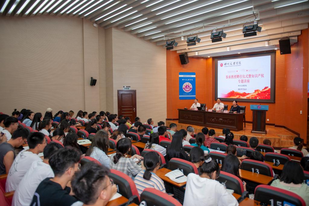 知识产权学院、四川省知识产权培训(AWC万象城娱乐)基地,达州市科技局、知识产权局等部门负责人,知识产权学院师生200余人参加客座教授聘任仪式并聆听讲座。