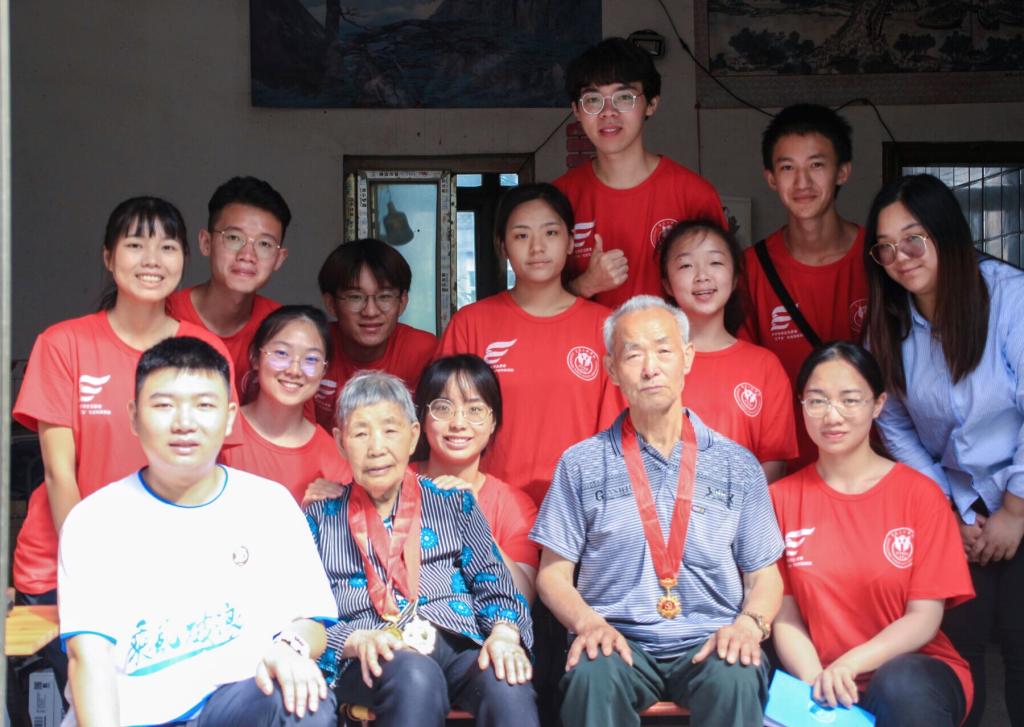 “锋行直通车”实践团师生与“光荣在党50年”的爷爷奶奶合影
