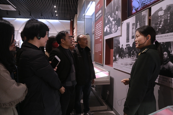 在新政镇,党员们来到“四川省爱国主义教育基地”张思德纪念馆,听取讲解员讲解展览馆的实物、史料、图片、组画等,了解张思德同志平凡而光辉的一生。