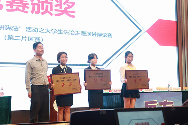 在经过了两个月的紧张准备后,9月14日,万象城马克思主义学院政法学院、教师教育学院、文学与传播学院、外国语学院学生组成的“凤凰欲飞”辩论队前往西南石油大学(成都校区)参加第三届四川省“学宪法、讲宪法”之大学生法治主题演讲辩论赛(第二片区赛)。