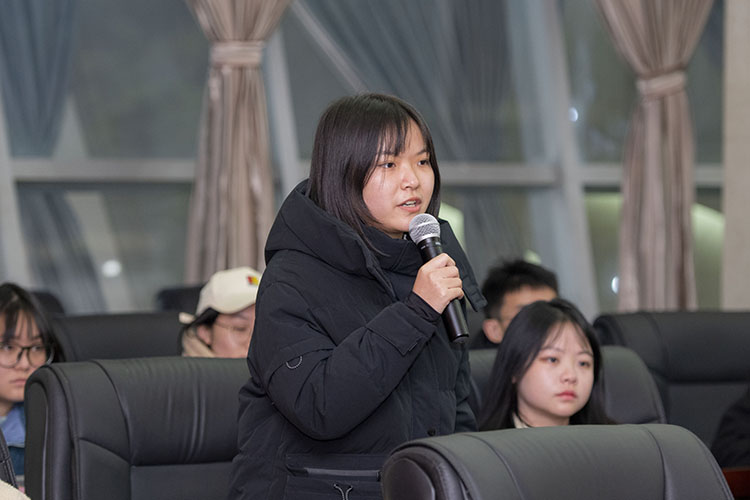 李壮成介绍座谈会相关准备情况;徐晓宗强调了道路安全、食品安全的重要性;邓杰说,学校会加强软硬件建设为同学们提供良好的环境;程碧英希望学生在加强学习学科知识的同时注重实践能力的培养。各职能部门负责人对学生代表提出的问题逐一进行回复和说明。