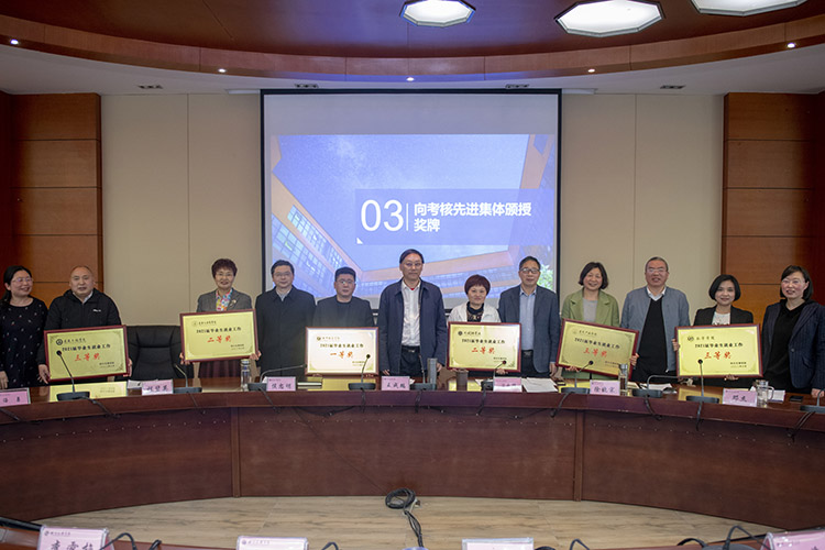 招生就业处处长冯进、教师教育学院院长叶怀凡分别作为职能部门和学院代表交流就业工作。会议对2021年毕业生就业工作绩效考核先进集体进行表彰。