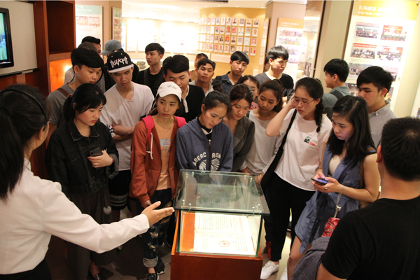 在校史陈列馆,百年兴替、薪火相传的历史画卷真实反映学校各个历史阶段的办学成就和历史经验。在主讲解员、助理讲解员和志愿讲解员的互动配合下,留学生被陈列馆里的图文、实物、影像资料所吸引,边听边问,追寻历 代师生筚路蓝缕、改革创新、奋发有为的历史足迹,感受到学校的优良传统 和办学精神,理解了学生主体、教师主导、环境育人、社会合作的办学思路 。