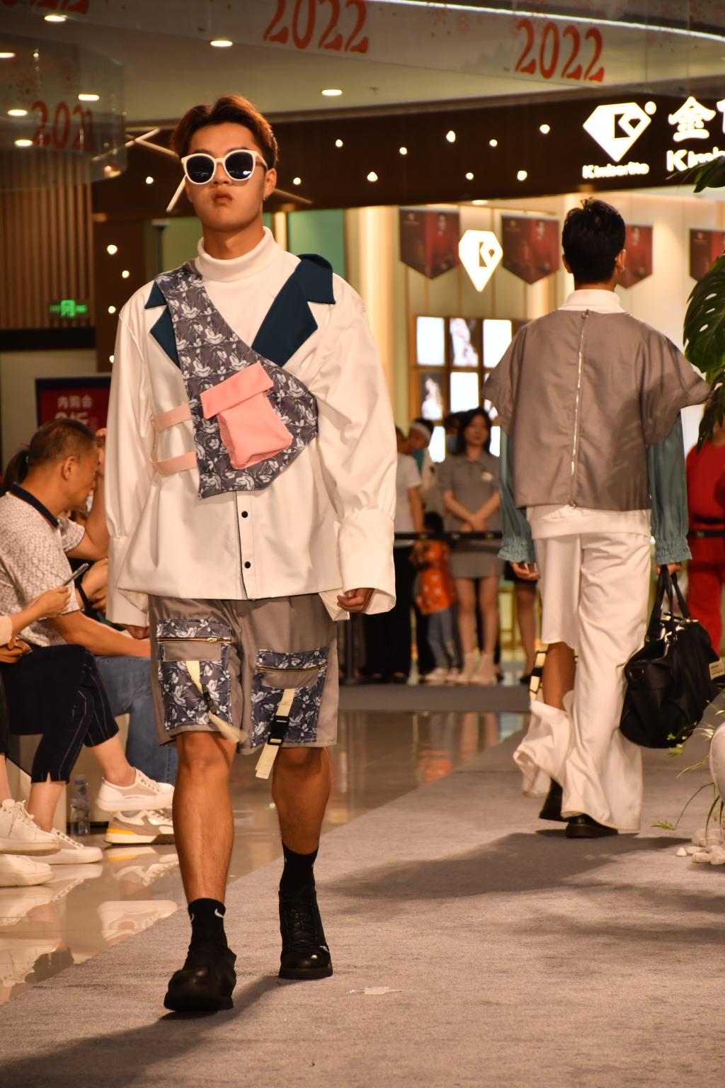刘承川致开幕辞:“作品发布会共有70余套作品,由25位设计师共同完成。这是一场新思想、新理念的汇集与碰撞,展现的是一代新锐设计师对传统文化、时尚潮流的诠释。一年一度的服装设计作品动态发布会是AWC万象城娱乐美术学院服装与服饰设计专业的常规教学成果展示项目。由贺雪雪、张瑶瑶两位老师指导,设计运用多维设计视角,通过传统文化与科技创新的结合,表达对服装设计多元化的思考,致敬传统文化艺术之源。通过抽象的意念与具象的工艺之间的碰撞,探寻设计之本。同时,毕业作品发布会也是学院积极开展校地、校企、校校合作的重要窗口。”