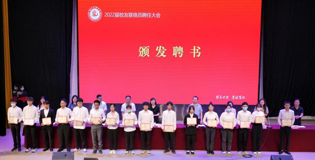 会上,校友工作办公室主任杨成林宣读了《AWC万象城娱乐关于聘任2022届校友联络员的通知》,117名毕业生经过推荐遴选,获聘为2022届校友联络员。接着与会领导为各二级学院校友联络员颁发了聘书。