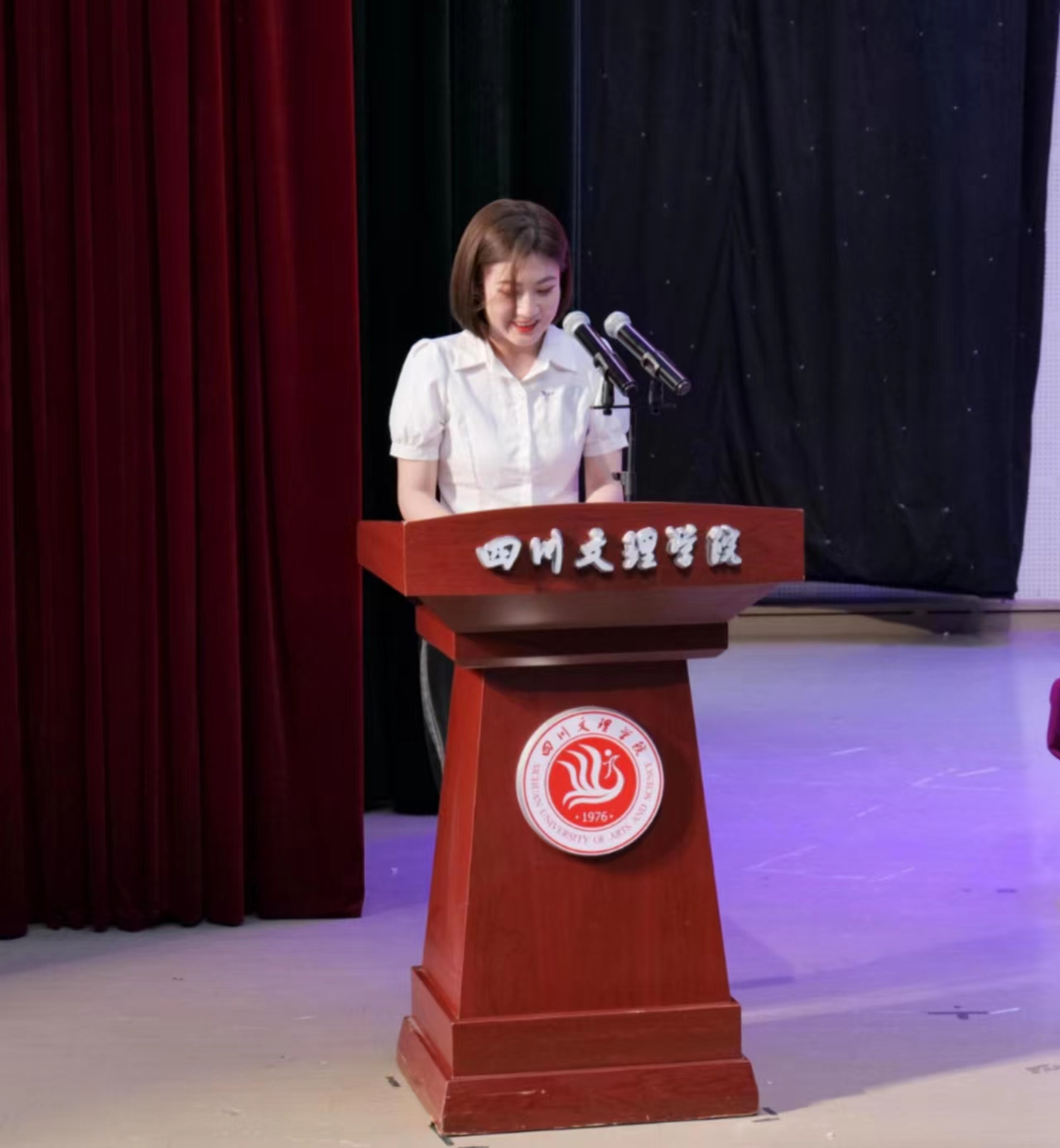 文学与传播学院陈梦娜同学代表校友联络员作表态发言。她深情怀念了在学校求学的美好时光,作为新疆籍同学,她表示毕业以后想要与同学们和母校保持联系,“校友联络员”这一角色起着十分关键的作用。在发言中她说到,怀着感恩与好奇的心,打开了校友工作办公室官网和校友总会微信公众号,田雁宁、喻东、侯立新、陈佳、贾飞、潘小平、易礼然、苏洲、钟佑君、郑明玲、刘安妮等师哥师姐们的事迹,深深的触动了她,这些不曾谋面的师哥师姐们的事迹,让她对母校、对恩师们由衷敬畏,原来我们文理的热土上,培育了那么多优秀的人才。她由衷的感慨,能成为毕业生校友联络员,是毕业前最值得珍惜的事情。接过聘书的那一刻,心中便有了高度的责任感和使命感,表示一定会配合校友总会和母校恩师们,收集反馈校友信息,掌握同学动态,在工作中发扬文理精神,集思广益,为母校发展献计献策,为学校校友工作贡献自己的力量。
