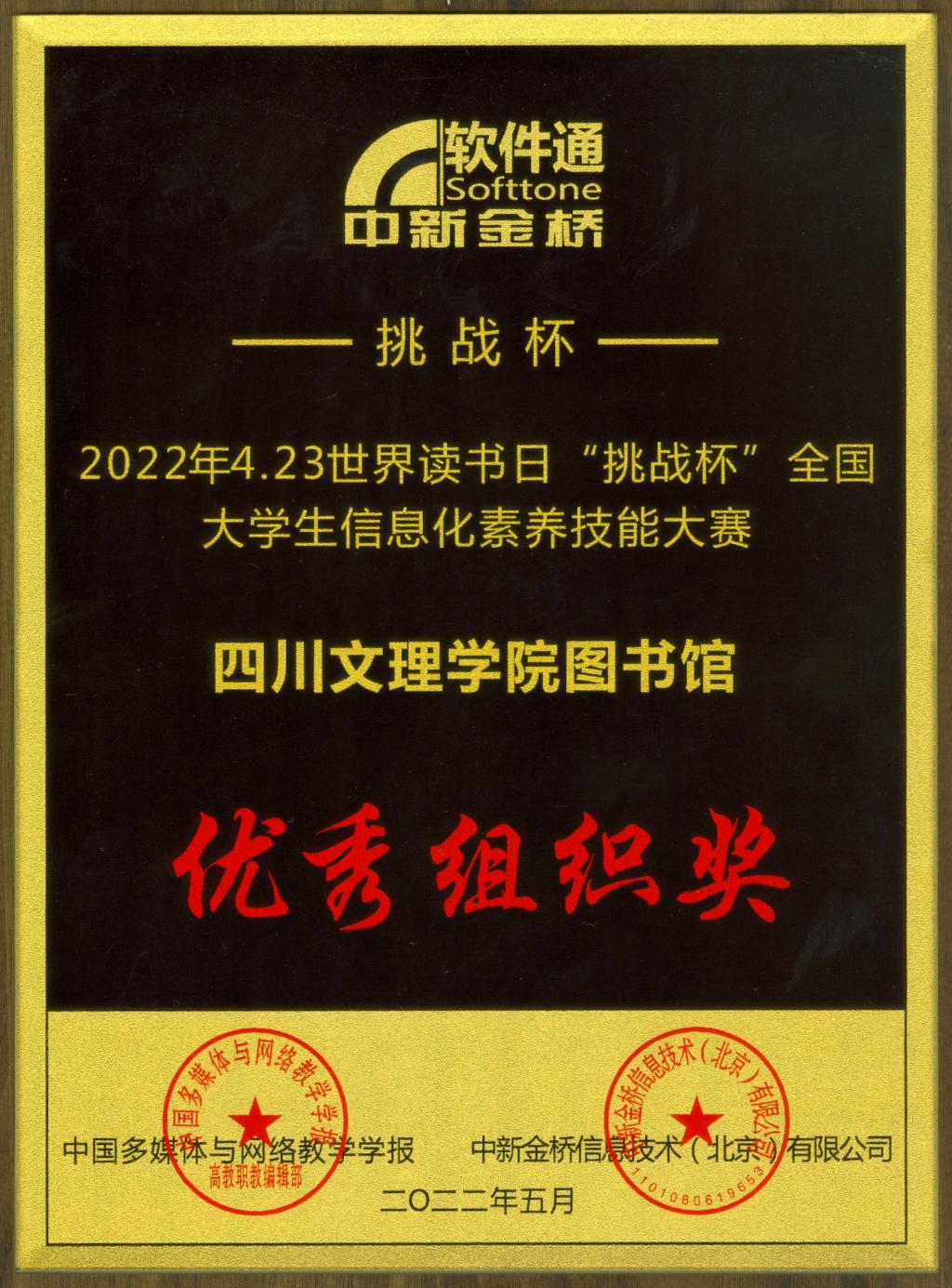 万象城图书馆把本次大赛融入进“第七届校园阅读文化节系列活动”中,广泛宣传、积极动员,组织45名同学参赛,6人进入了各项目的前100名,图书馆荣获“优秀组织奖”。