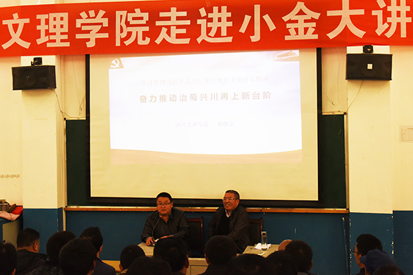 下午,徐晓宗在达维镇中学为达维镇镇级机关负责人,所辖八个村“两委”干部,第一书记,达维中学教师代表等50余人作“深入贯彻习近平总书记来川视察重要讲话精神奋力推动治蜀兴川再上新台阶”的主题报告。他着重从三个方面予以解读。一是习近平总书记对四川人民的亲切关怀,是治蜀兴川再上新台阶的强大动力;二是新形势下习近平总书记对四川工作的重要指示,是治蜀兴川的根本遵循和行动指南;三是习近平总书记关于推动治蜀兴川再上新台阶的总要求,是我们推动治蜀兴川再上新台阶的巨大鼓舞。最后,他结合小金县达维镇的实际提出诚恳建议:扎实推动乡村振兴战略,着力抓好精准脱贫工作,夯实基础设施建设,挖掘打造达维镇丰富的红色旅游文化资源,发展民族特色产业,助推脱贫攻坚,使藏区群众与全国人民一道同步迈进小康社会。
