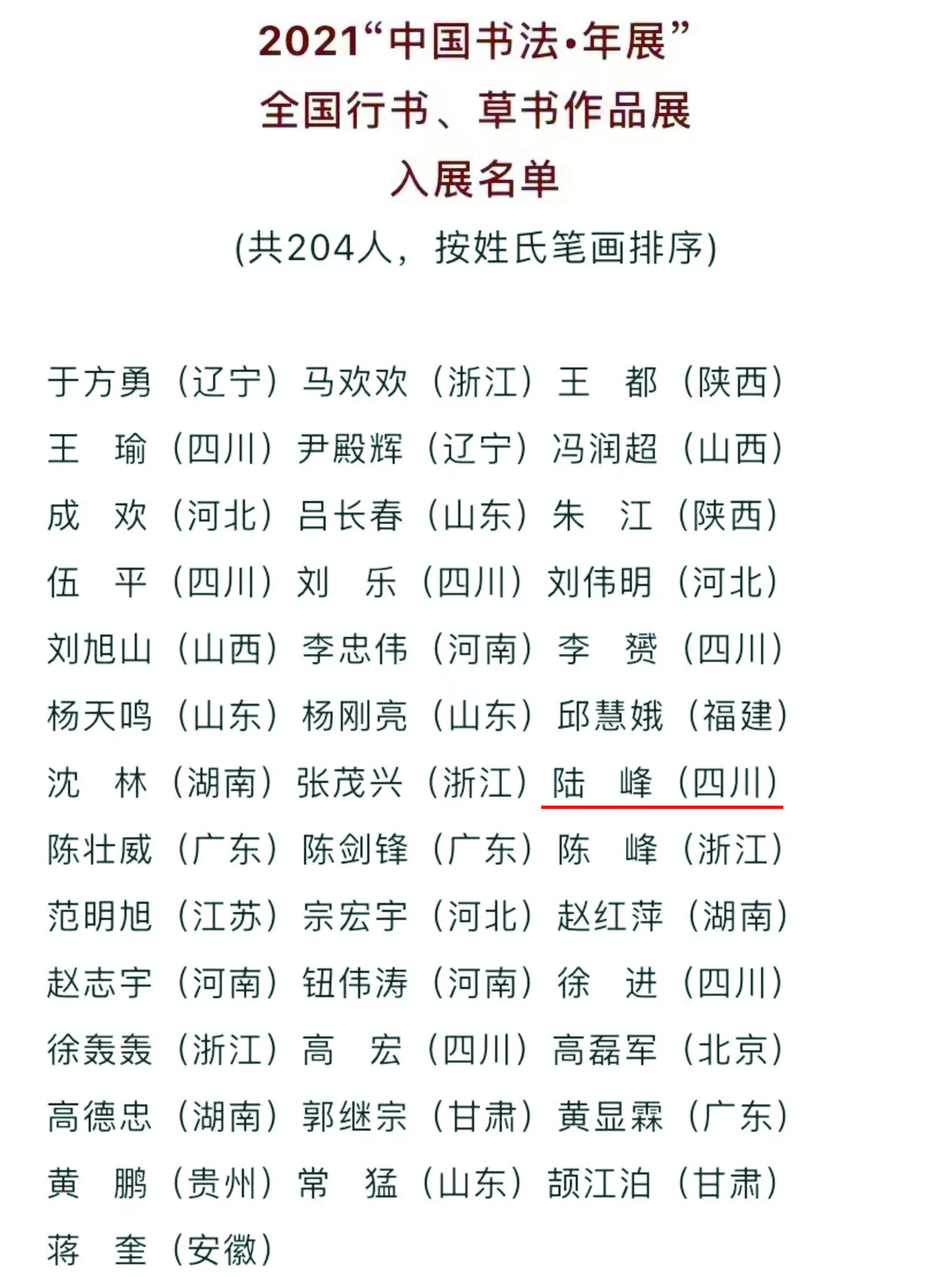 2022年8月,中国书法家协会公布了2021“中国书法·年展”全国行书草书作品展和2021“中国书法·年展”全国楷书作品展入展名单,万象城青年教师陆峰、何绪虎经过层层角逐,分别在这两项类别中入展并进入全国前40强名单。