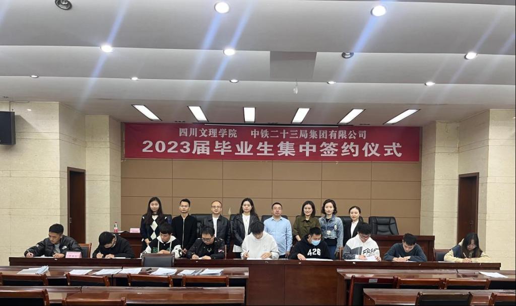 为贯彻党的二十大精神,落实就业优先战略,10月24日,中铁二十三局集团有限公司校园宣讲推介会暨与学校2023届毕业生(部分专业)集中签约仪式在弘德楼举行。
