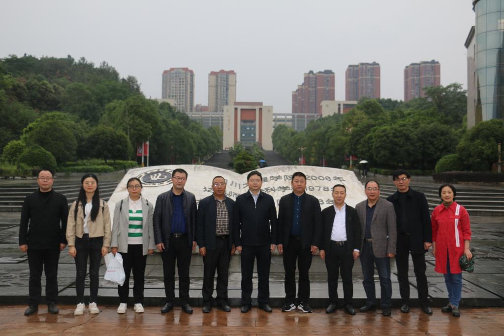 侯忠明对冒雨来校调研的姜宏伟一行表示欢迎。他站在展现学校办学历程的黄铜浮雕前,详细介绍了学校的办学缘起、师范专科到现在本科阶段的校史校情。他说,校史是对一所学校发展轨迹的真实记录,是校园文化建设的重要内容,具有“留史、资政、育人”的重要作用。对于校史明显的育人功能,他深有感触,指出,校史中蕴含着推动学校由小到大、由专科发展到本科的精神基因,学校逐渐发展壮大的背后是历代文理师生攻坚克难、改革创新、奋发有为的一个个鲜活的人、一段段温暖的事。46年来办高等教育凝练出的“艰难困苦玉汝于成”的办学精神,必须通过校史文化建设传续下去,让更多师生了解学校发展,支持学校发展,参与学校发展,一张蓝图绘到底,凝心聚力抓建设。他还对宣汉职业中专学校即将布展的校史馆建设提出了启发性建议。