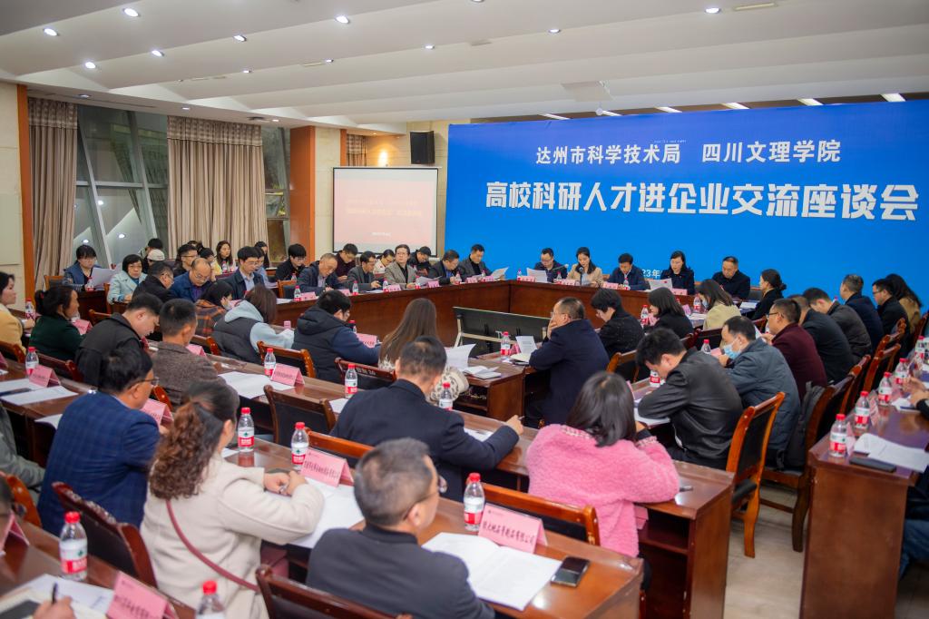 达州市科学技术局分管同志及业务科室负责人,各县(市、区)科技部门主要负责同志及业务股室负责人,学校党委组织部、党委教师工作部、人事处、科技处、校地合作处等相关职能部门负责人及二级学院科研人员,达州职业技术学院、达州市农业科学研究院有关负责人以及36家科技型企业代表参加交流座谈会。