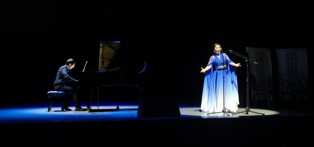 偌大的音乐厅座无虚席,李玥欣、鲜晓明、陈娟三位音乐老师相继倾情演唱《关雎》《秋风词》《黄鹤楼送孟浩然之广陵》《蝶恋花·槛菊愁烟兰泣露》《如梦令》《江城子·乙卯正月二十日夜记梦》《念奴娇·赤壁怀古》《青玉案·元夕》《幽兰操》等经典诗词。在钢琴的伴奏下,或美好浪漫、或真挚潇洒、或离愁别恨等情感被表现得淋漓尽致。演唱者们忘我的演唱状态、高超的艺术表现力与诗词深邃优美的意境交织在一起,将听众情绪推向一个又一个高潮,仿佛身临其境,久久难以平复。