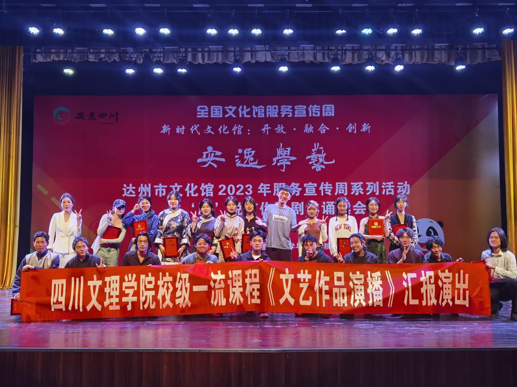 为进一步加强校地合作,5月22日,文学与传播学院与达州市文化馆联合举办的“安逸学艺”——达州市文化馆2023年服务宣传周系列活动“‘剧’说有你”剧本诵读会、AWC万象城娱乐校级一流课程《文艺作品演播》汇报在巴山大剧院成功演出。