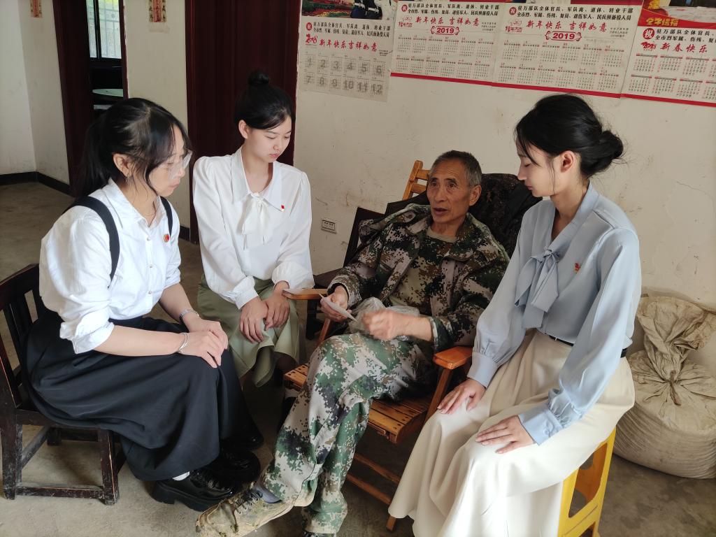 团队在花萼山护林站,与最早加入花萼山护林队的队长、当地村民蒋大兵大爷机缘巧遇。他说:“在90年代,我因病退伍回乡后不久,周永开老书记找到我,我便与周老革命一起植树护林,由此建立起了花萼山护林队,2000年成立了花萼山护林工作站”。随后,蒋大爷为团队生动地讲述了当年周永开老书记带领群众植绿护绿,为花萼山生态改善所做的一切努力。为了发展经济,种植萼贝,周老还亲自到山顶挑土,曾经为此历险受伤。在行走中寻找到的答案,让团队学生对周永开老书记有了更深的感情。在讲述周老的先进事迹过程中,也让新时代的大学生明白,我们要始终坚持以习近平生态文明思想为根本遵循,牢固树立和践行“绿水青山就是金山银山”的生态理念,使绿水青山持续发挥生态、经济和社会效益。