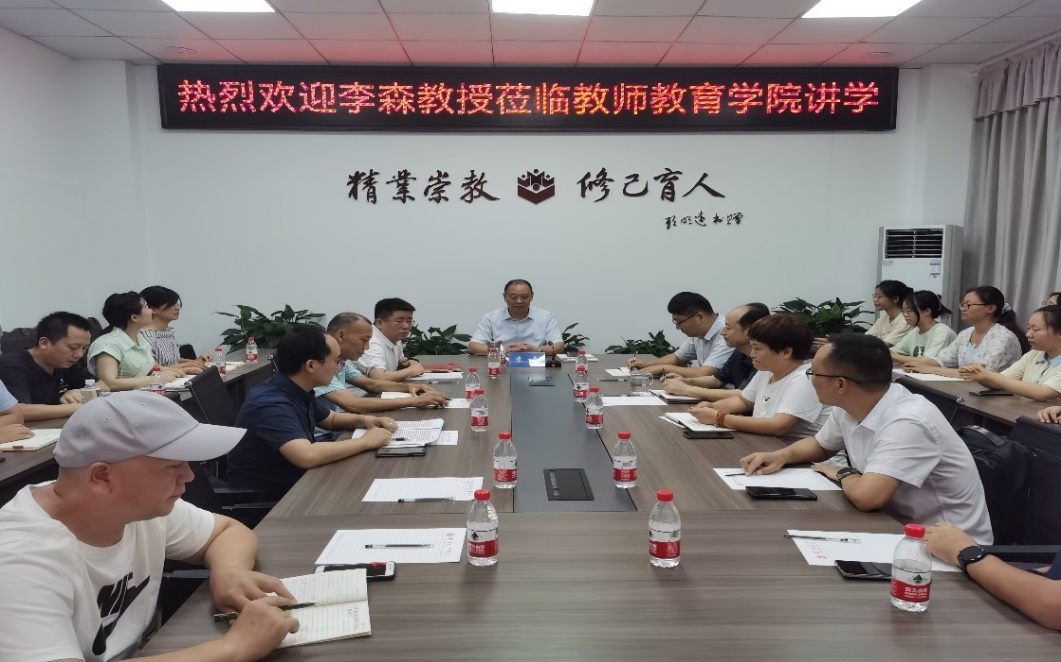 返校期间,李森教授深入教师教育学院进行了学科建设专项调研与指导,详细了解教师教育学院在学科方向凝练、学科团队构建、学科平台搭建、学科成果产出等方面的情况,并在调研结束后为师生作了题为“以‘有组织的科研’推进教育学学科建设”学术讲座。
