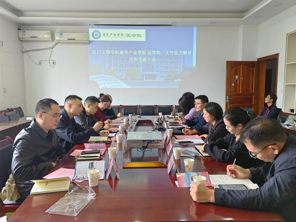 2023年10月9日上午,大竹县卫生健康局党组成员、副局长徐波一行来我院洽谈交流合作事宜。会议由学院党委书记彭时敏主持,副院长(主持工作)褚延鹏、副院长张俊浦、医学教研室主任刘常燕及医学教师代表参加会议。