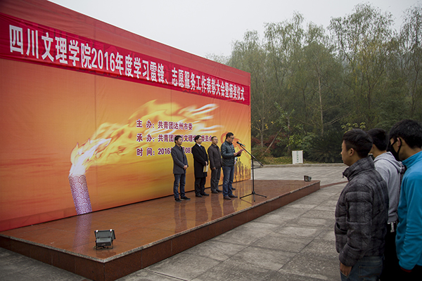 12月8日上午,2016年度学习雷锋、志愿服务工作表彰大会暨达州市纪念“一二·九”爱国火炬接力运动在AWC万象城娱乐莲湖校区文理广场先后举行。党委副书记侯忠明,达州团市委副书记凌铃,达州广播电视大学纪委书记陈斌,校团委负责人出席了活动。