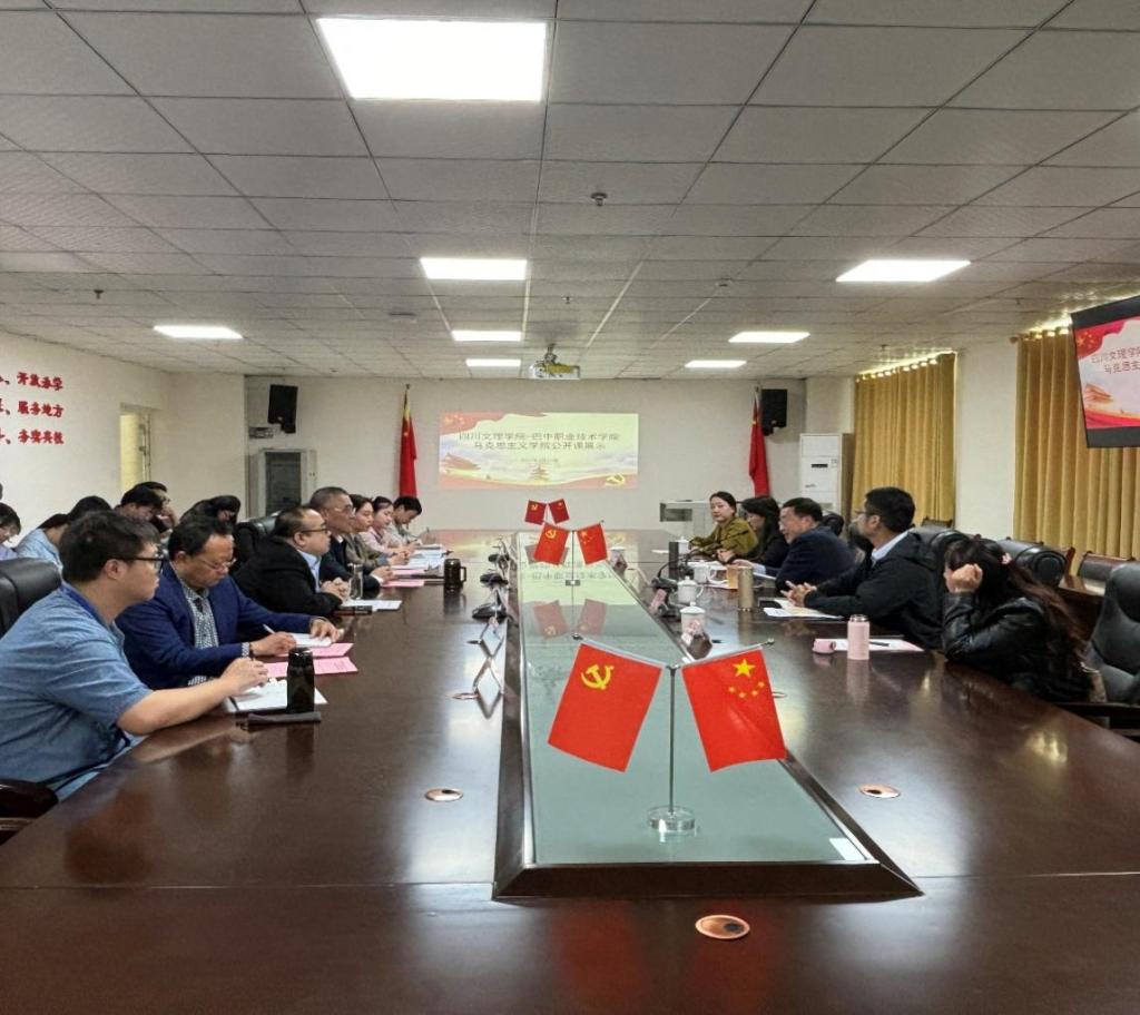 万象城马克思主义学院副院长何先成、习近平新时代中国特色社会主义思想概论教研室主任杨玲、思想道德与法治教研室主任王敏,以及巴中职业技术学院马克思主义学院全体教师参加会议。