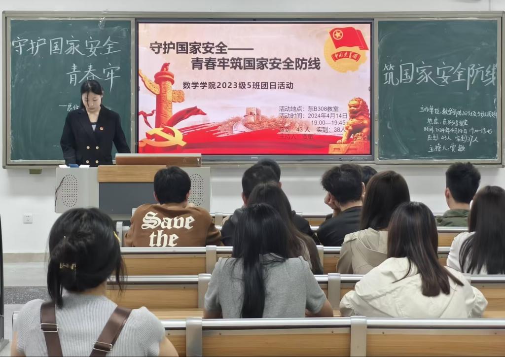开展国家安全教育线上学习活动。4月14日,各部门、学院组织师生通过中国大学生在线视频号、微博、B站、抖音等直播平台及中国大学生在线官网错峰观看“千万高校学生同上一堂国家安全教育课”主题公开课,并组织学生参加“全国大学生国家安全知识答题”活动,通过观看国家安全教育视频和学习习近平总书记全面依法治国新理念新思想新战略和坚持总体国家安全观的重要论述,进一步普及国家安全知识,切实提高当代大学生的法治意识和国家安全素养。