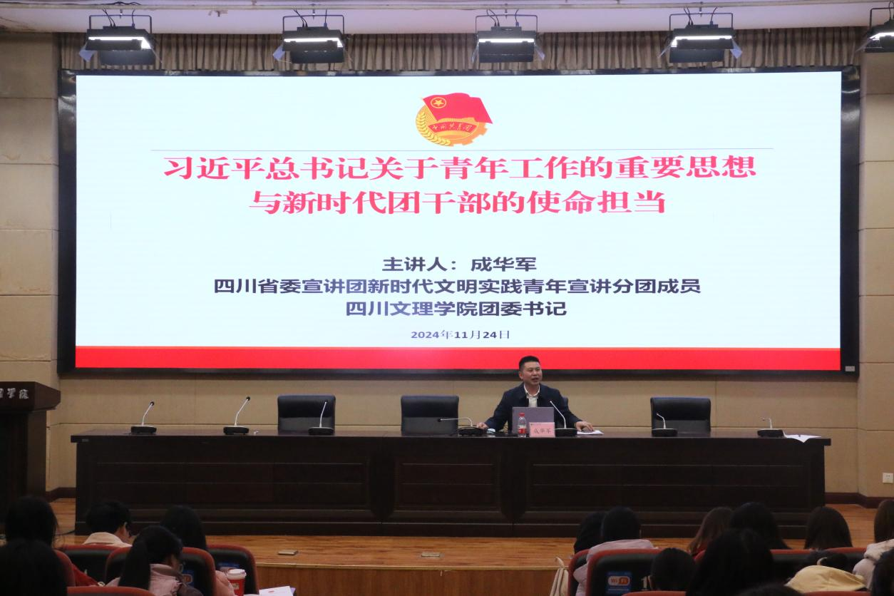 第二课由省委宣讲团新时代文明实践青年宣讲分团成员、团委书记成华军围绕“习近平总书记关于青年工作的重要思想与新时代团干部的使命担当”的主题,从青年工作的战略地位、中国青年运动的时代主题、青年工作的职责使命、青年一代健康成长的正确道路、青年工作的路径方法、共青团改革发展的目标任务以及必须加强党对青年工作的领导等7个方面深入解读了习近平总书记关于青年工作的重要思想,为高校共青团干部在新形势下做好党的青年工作提出了方法策略。