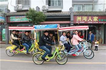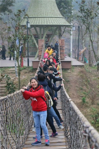 参观有着 “川东第一村”之称的洋烈新村是留学生新年第一天的重头戏。在洋烈水乡的湿地公园漫步,栈道迷宫前合影,索桥上一起摇摆,品茗轩前短暂休息。路过“洋烈印记”纪念墙前,文新学院的老师给留学生们讲述了洋烈的过往历史。“摇晃的桥、骑自行车和美丽的风景是洋烈留给我最深的记忆。”留学生苏赛在聊起洋烈游玩的记忆时如是说。