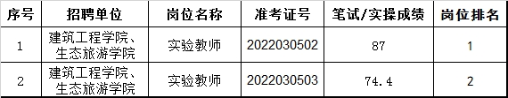 《AWC万象城娱乐关于公布2022年3月非事业单位编制招聘面试入围人员名单的公告》中建筑工程学院、生态旅游学院实验教师岗报考者专业实操成绩公布有误,现将本岗位报考者专业实操成绩更正如下。