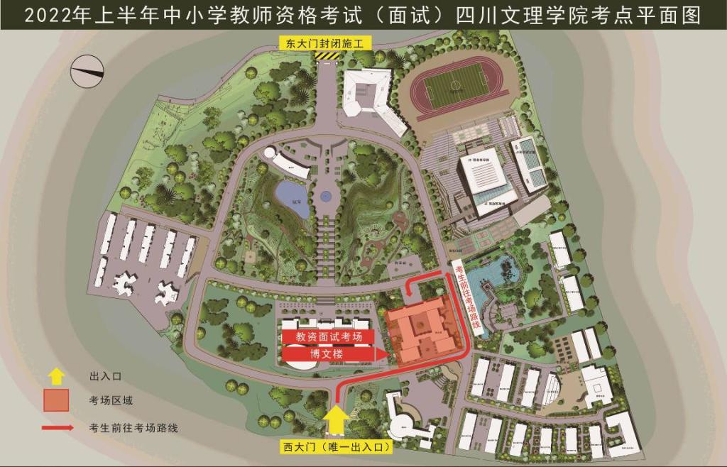 2.考生一律从学校西大门进入,校内实行单循环通行,请根据考试引导标识,自觉遵守考试规定。