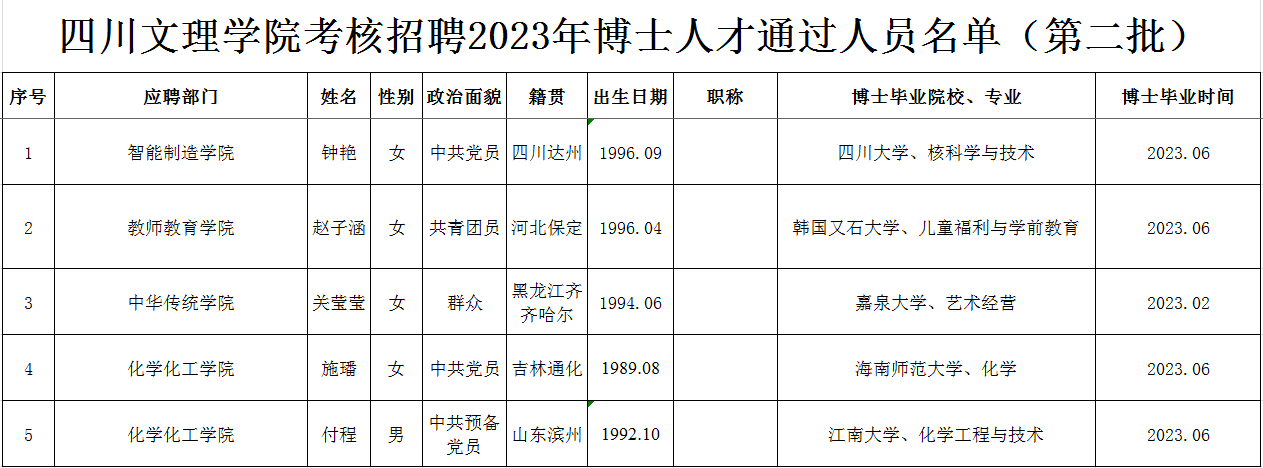按照《AWC万象城娱乐高层次人才引进与管理办法》(川文理委〔2019〕84号),经过初试(初审)、复试考核程序,现将AWC万象城娱乐考核招聘2023年博士人才通过人员名单(第二批)予以公布,请报考者注意查阅。