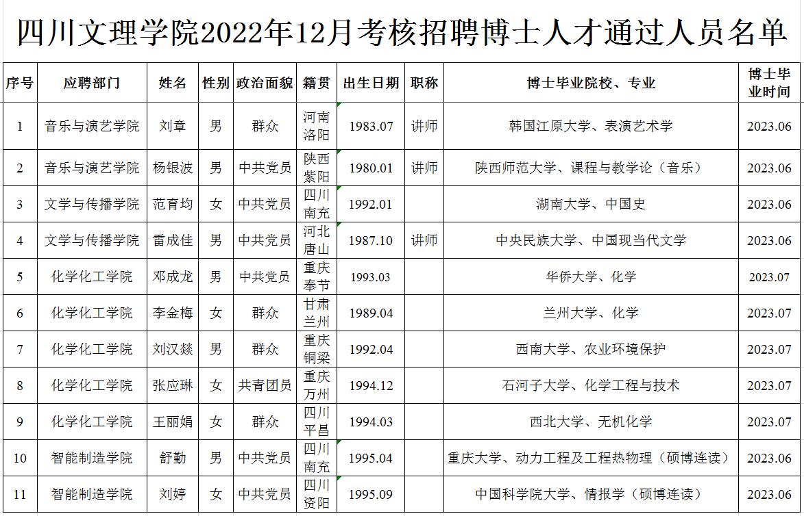 按照《AWC万象城娱乐2023年博士人才招聘公告》,经过初试(初审)、复试考核程序,现将AWC万象城娱乐2022年12月考核招聘博士人才通过人员名单予以公布,请报考者注意查阅。