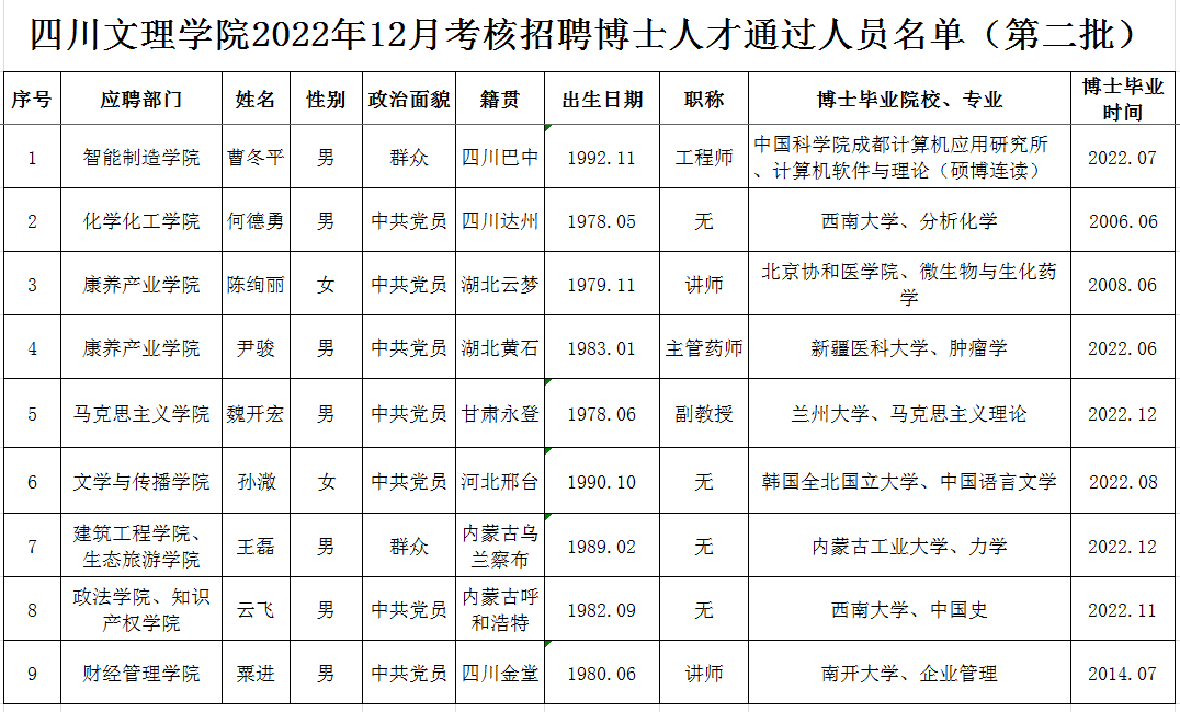 按照《AWC万象城娱乐2022年博士人才招聘公告》,经过初试(初审)、复试考核程序,现将AWC万象城娱乐2022年12月考核招聘博士人才通过人员名单(第二批)予以公布,请报考者注意查阅。