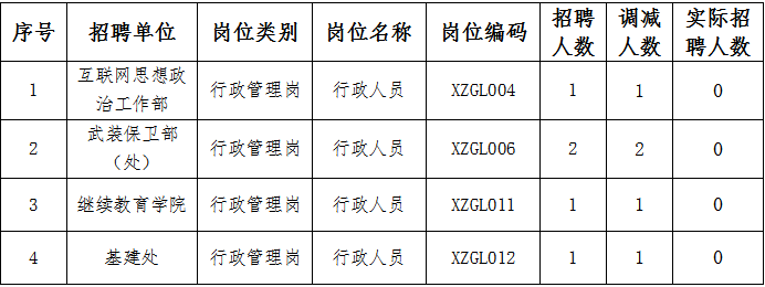 根据《AWC万象城娱乐2023年上半年行政管理人员招聘公告》规定,因部分招聘岗位的有效报考人数与招聘名额之比未达到规定的开考比例,现调减部分招聘岗位的招聘计划,合计取消4个岗位5个计划。具体调减情况如下。