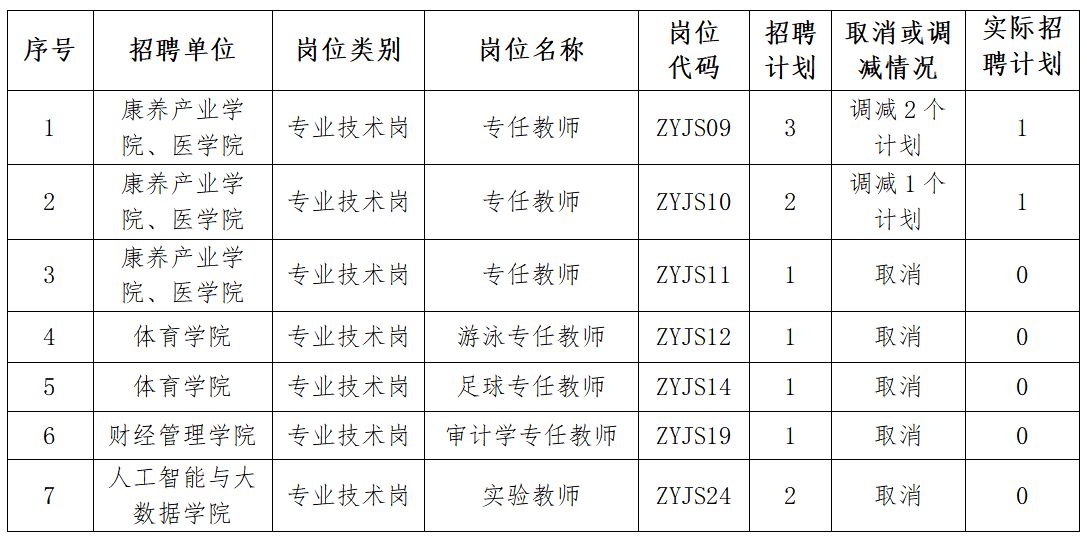 根据《AWC万象城娱乐2025年6月人才招聘公告》规定,因部分招聘岗位的有效报考人数与招聘名额之比未达到规定的开考比例,现取消和调减部分招聘岗位的招聘计划,调减2个岗位3个计划、取消5个岗位6个计划。具体情况如下。
