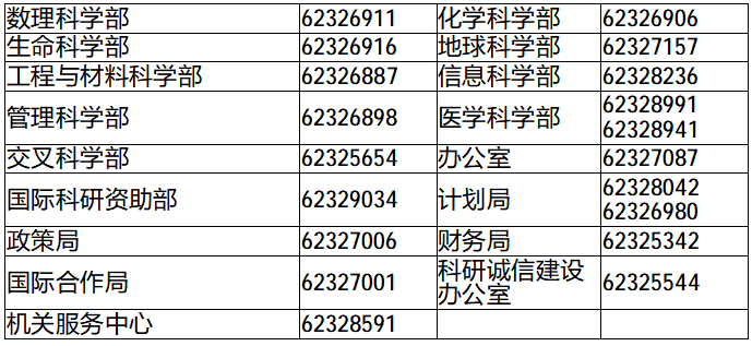 2.各部门咨询电话