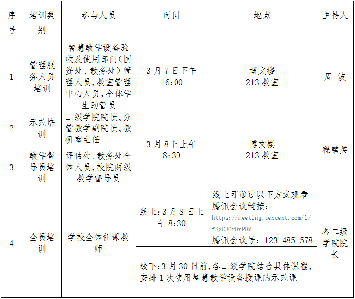 1.熟悉掌握现代教育信息技术手段是现代教师发展的应有之义,也是提升课堂教学效果,保障育人质量的关键途径。全校任课教师均须参加本次培训,严格按照规定时间参与线上或线下学习,确保培训全覆盖、无遗漏。